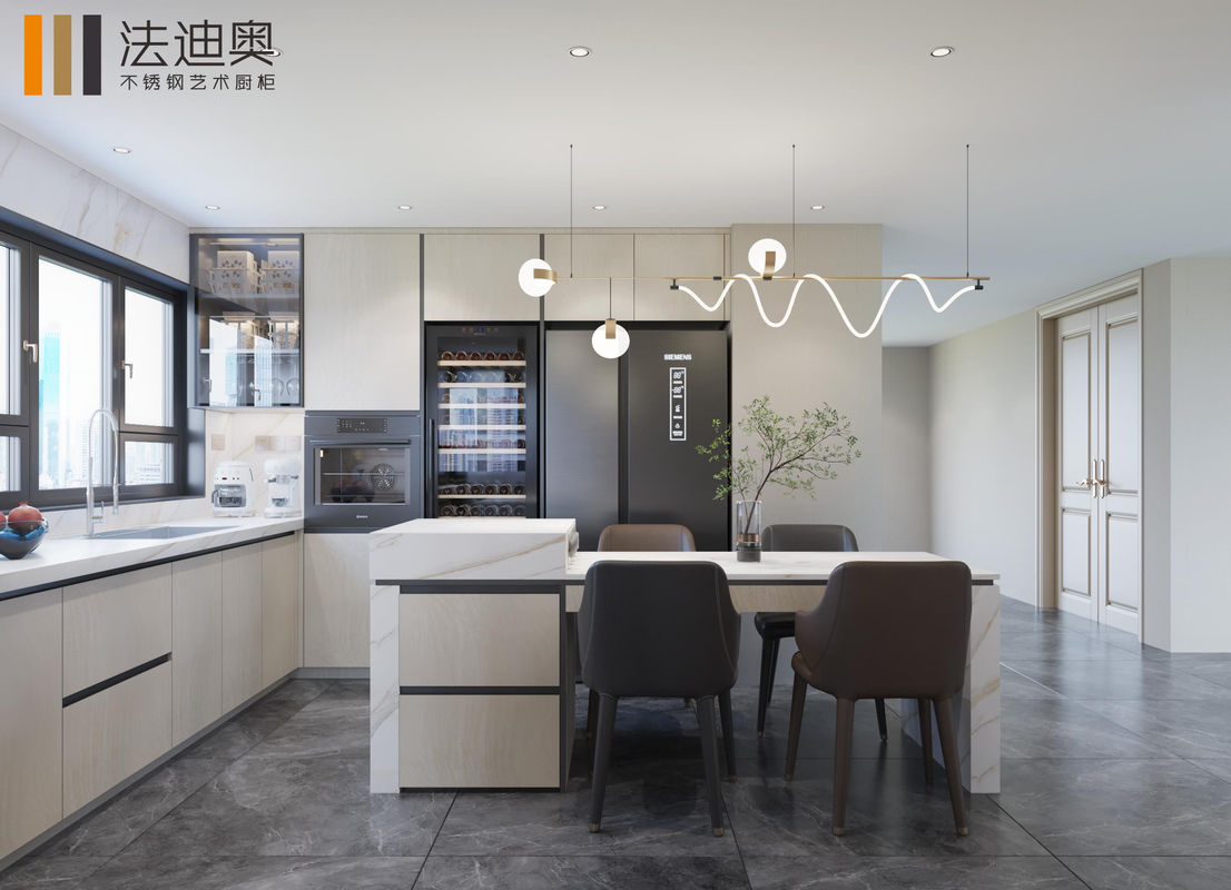 | Ε: Γιατί αυτό το ντουλάπι κουζίνας μοντέρνου στυλ με πάγκο χαλαζία συνδυάζει μια διαφοροποιημένη παλέτα φινιρίσματος με ανοξείδωτη δομή; Η αξία είναι ότι ο ορατός συνδυασμός φινιρίσματος δίνει στο έργο μια πιο ζεστή, πιο οικεία οπτική ταυτότητα, ενώ η ανοξείδωτη δομή ντουλαπιού διατηρεί το σύστημα ντουλαπιών εύκολο στη συντήρηση και πιο αξιόπιστο για μακροχρόνια χρήση. |