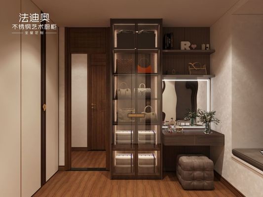 | Χώρος εμφάνισης γυαλιού | Ένα τμήμα με γυάλινες πόρτες για την εμφάνιση ειδών υψηλής ποιότητας όπως τσάντες ή παπούτσια, προσθέτοντας μια πολυτέλεια ενώ προστατεύει τα πολύτιμα αντικείμενα από τη σκόνη. |