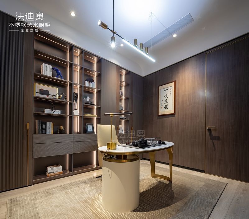 Αυτό το προσαρμοσμένο ντουλάπι κουζίνας είναι κατασκευασμένο γύρω από μια διαφοροποιημένη στρατηγική φινιρίσματος: μια πολυεπίπεδη premium παλέτα σε συνδυασμό με ανοξείδωτη δομή ντουλαπιού. Αυτός ο συνδυασμός προσφέρει στους αγοραστές μια πιο ζεστή πολυτελή έκφραση, χωρίς να χάνεται η ευκολία καθαρισμού και η ανθεκτικότητα του έργου που αναμένεται από ντουλάπια από ανοξείδωτο χάλυβα.