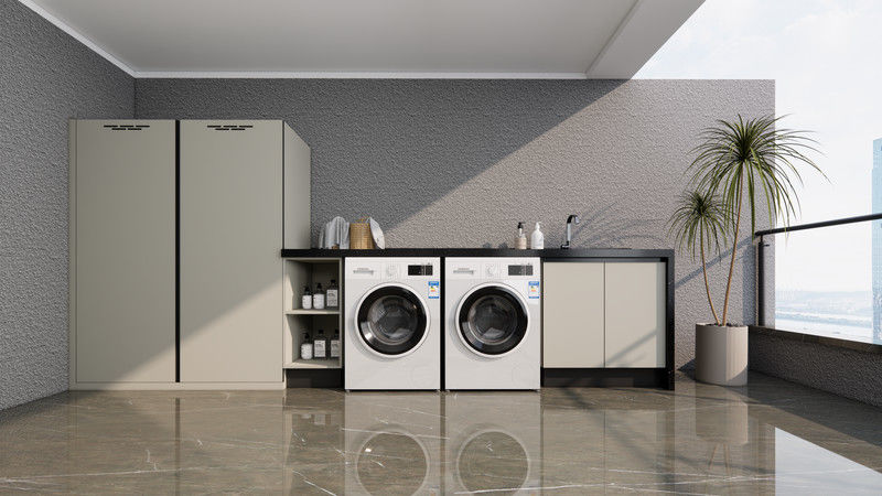 Αυτό το ντουλάπι πλυντηρίου για μπαλκόνι προορίζεται για έργα που βασίζονται στην εφαρμογή, όπου η δομή του ντουλαπιού από ανοξείδωτο χάλυβα πρέπει να παραμένει αξιόπιστη σε υγρές ή εκτεθειμένες συνθήκες. Η σελίδα εστιάζει στον πρακτικό σχεδιασμό, ευρύχωρα ντουλάπια και ανοιχτά ράφια για την αποθήκευση απορρυπαντικών, εργαλείων και άλλων απαραίτητων, και στις επιλογές υλικών που καθιστούν την εγκατάσταση ευκολότερη στη συντήρηση με την πάροδο του χρόνου.