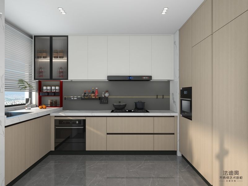 | Ε: Υποστηρίζει αυτό το μοντέρνο ντουλάπι κουζίνας από ανοξείδωτο χάλυβα σε σχήμα U με ξύλινη υφή ενσωματωμένες συσκευές ή χαρακτηριστικά προβολής; Ναι. Η τρέχουσα σελίδα αναφέρεται ήδη στην ενσωμάτωση συσκευών και στον οργανωμένο σχεδιασμό αποθήκευσης/προβολής, κάτι που βοηθά τις ομάδες προμηθειών να κρίνουν εάν η γλώσσα σχεδιασμού μπορεί να μεταφερθεί σε ψηλά ντουλάπια, νησίδες και ζώνες χαρακτηριστικών. |