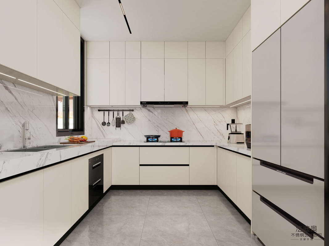 Απολαύστε την τέλεια συγχώνευση μινιμαλιστικού σχεδιασμού και λειτουργικής αριστείας με την καινοτόμο λύση κουζίνας πολλαπλών ζωνών της Fadior. Αυτή η εκλεπτυσμένη διάταξη διαχωρίζει επιδέξια τις υγρές και στεγνές περιοχές της κουζίνας, ενσωματώνοντας παράλληλα ένα ευέλικτο μπαρ πρωινού, δημιουργώντας διακριτούς αλλά συνδεδεμένους χώρους για μαγειρικές δραστηριότητες. Τα καθαρά ντουλάπια σε απαλό υπόλευκο χρώμα συνδυάζονται άψογα με εκτεταμένες λευκές επιφάνειες χαλαζία που εκτείνονται σε πάγκους και πλάκες, δημιουργώντας μια συνεχή οπτική ροή. Τα στρατηγικά τοποθετημένα ράφια τοίχου με ενσωματωμένο φωτισμό LED ενισχύουν τόσο τη λειτουργικότητα όσο και την ατμόσφαιρα, ενώ η έξυπνη ζώνη επιτρέπει την ταυτόχρονη προετοιμασία φαγητού, το μαγείρεμα και την κοινωνική αλληλεπίδραση. Η τεχνογνωσία της Fadior στην προσαρμογή ολόκληρου του σπιτιού λάμπει σε αυτήν την προσεγμένη διαμόρφωση, όπου τα premium υλικά συναντούν τον εργονομικό σχεδιασμό για να δημιουργήσουν μια κουζίνα που είναι τόσο πρακτική όσο και όμορφη.