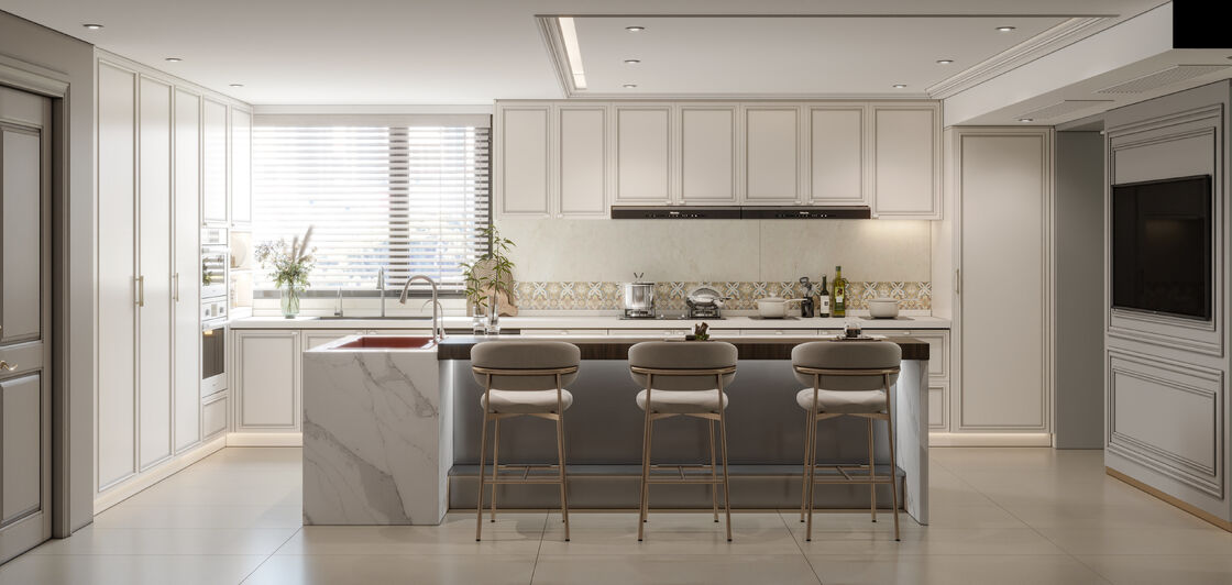 | Μηχανισμοί & Αξεσουάρ | Οι υψηλής ποιότητας κρυφοί μεντεσέδες, τα συστήματα συρταριών πλήρους επέκτασης και οι ενσωματωμένες λαβές παρέχουν ομαλή λειτουργία |