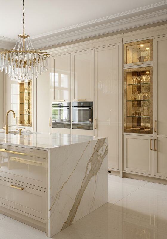 Η Fadior τοποθετεί αυτό το μοντέρνο ντουλάπι κουζίνας ως μια λύση επιπέδου έργου, κατασκευασμένη από ανοξείδωτο χάλυβα ποιότητας τροφίμων 304 με επίστρωση PVD σαμπανιζέ χρυσό. κρεμ γυαλιστερή λακ πολυουρεθάνης. χρυσό-βαμμένο αντίκε antique καθρέφτη. πάνελ με ένθετα από κεχριμπαρένιο όνυχα, ζεστό ανακλαστικό χρυσό, ποιότητας καθρέφτη στα προφίλ του πλαισίου, σατινέ στις όψεις των πάνελ, και πάγκο και πλάτη από μάρμαρο κρεμ botticino για εντυπωσιακά νησιά κουζίνας για πολυτελείς κατοικίες, σουίτες φιλοξενίας και εκθετήρια σχεδιαστών που αναζητούν μεταλλική κομψότητα με ζεστή αίσθηση. Αυτή η προδιαγραφή εστιάζει σε πλαίσιο από ανοξείδωτο χάλυβα σαμπανιζέ χρυσό με επίστρωση PVD με γυαλιστερά προφίλ και σατινέ όψεις πάνελ, πάνελ πόρτας από κρεμ γυαλιστερή λακ με βαθιά αντανάκλαση σαν καθρέφτης και ζεστό ελεφαντόδοντο βάθος, ώστε οι σχεδιαστές, οι αντιπρόσωποι και οι αγοραστές έργων να μπορούν να αξιολογήσουν την εφαρμογή, το φινίρισμα και τη λογική παράδοσης με λιγότερη εικασία.